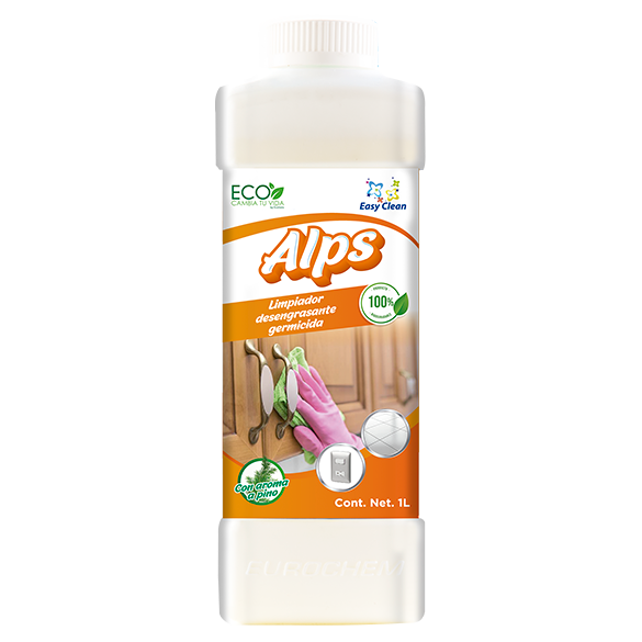 ALPS es un efectivo desengrasante de uso general, con aceite esencial de pino. Útil para la limpieza y desengrase de pisos, paredes, áreas, gabinetes de madera, etc.