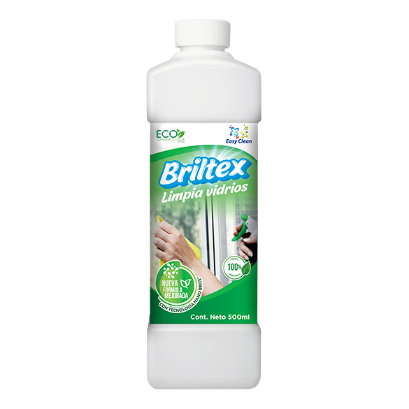 BRILTEX es un limpiador líquido biodegradable, formulado especialmente para la limpieza de todo tipo de vidrios, espejos, parabrisas, etc.