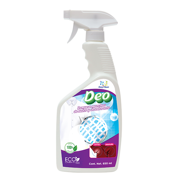 DEO es un desmanchador orgánico, de nueva tecnología, especialmente diseñado para eliminar las manchas y residuos en la ropa, ocasionados por el uso de desodorante personal.