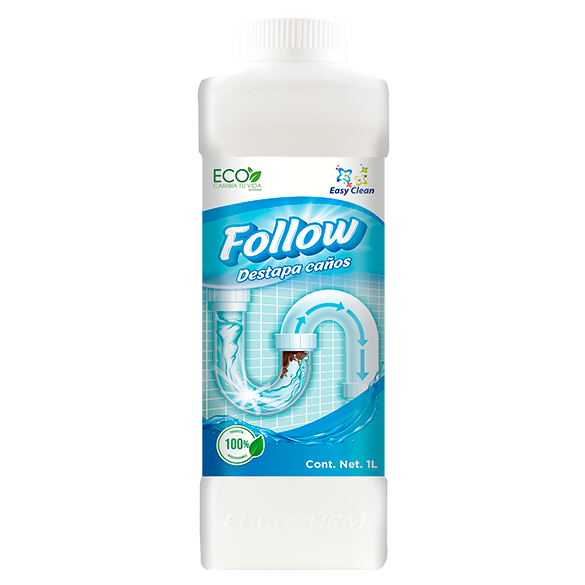 FOLLOW es un eficaz destapacaños, disuelve materia orgánica, cabellos, verduras y frutas, entre otros.