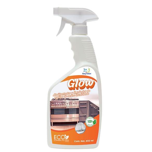 GLOW es un limpiador diseñado para abrillantar y desmanchar superficies de acero inoxidable en el hogar, tales como refrigeradores, hornos de microondas, lava lozas, campanas, etc. GLOW también sirve para limpiar y abrillantar las llaves metálicas y grifos en cocinas, baños, etc.