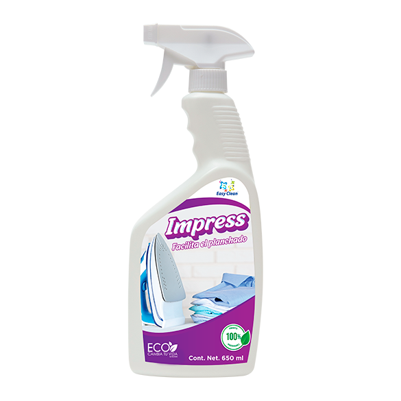 IMPRESS es un producto especialmente desarrollado para facilitar las tareas de planchado de ropa. Su uso permite un deslizamiento suave de la plancha sobre las prendas, reduciendo los tiempos de planchado en casi cualquier tipo de tela.