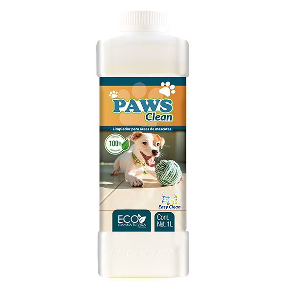 PAWS CLEAN es un efectivo detergente antibacterial y poderoso desodorizante para el lavado de pisos en áreas de estancia y dormitorios de mascotas. Ideal para pisos duros de loseta, barro, cemento, etc.