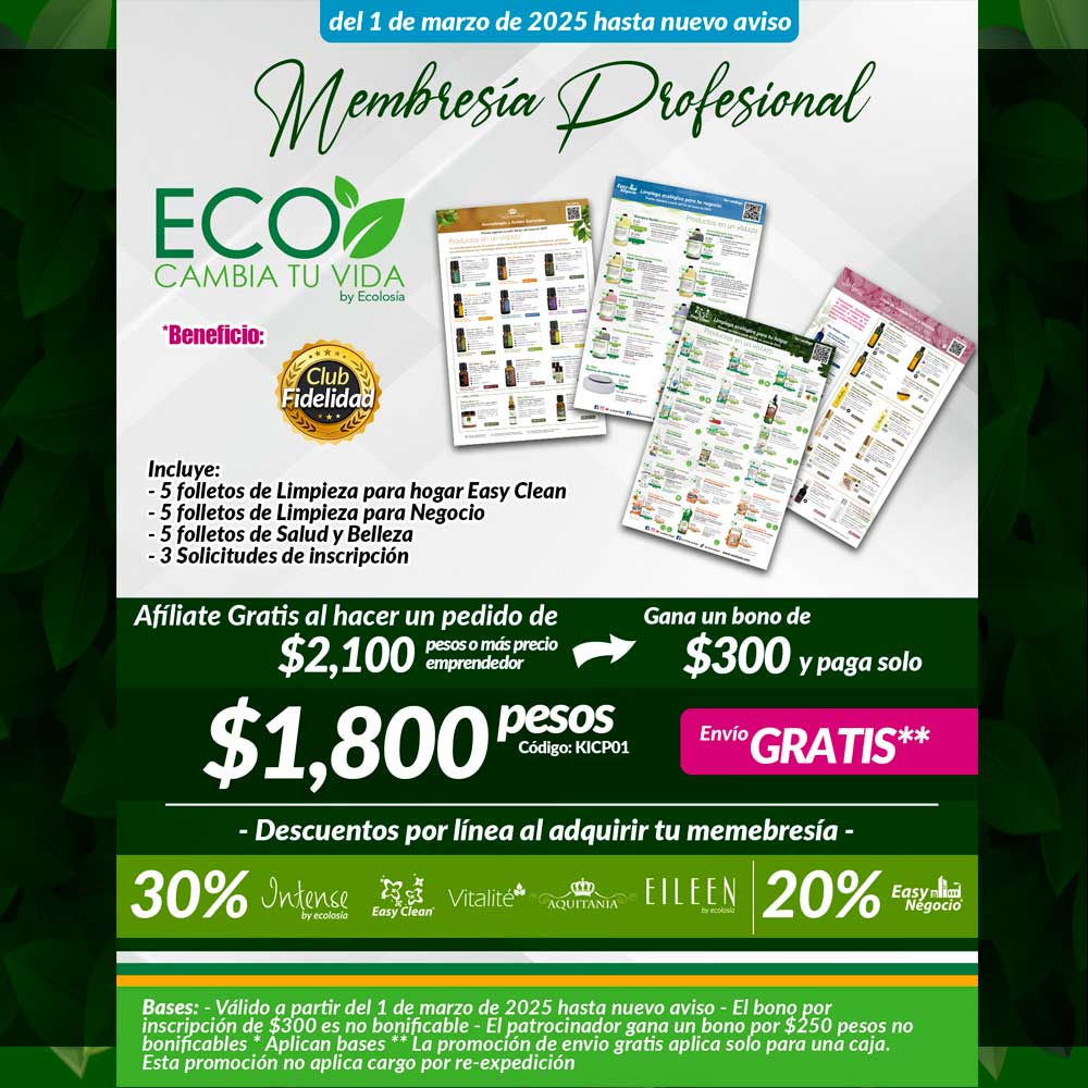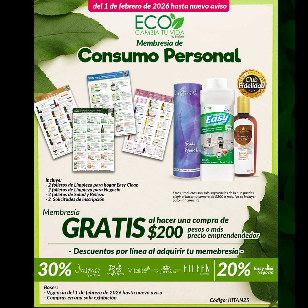 En Eco Cambia Tu Vida encontrarás increíbles opciones para inscribirte al negocio que cambiará tu vida, contamos con productos de limpieza de alta calidad para tu hogar y negocio, productos de belleza con calidad SPA, aromaterapia, suplementos alimenticios, cosméticos hechos a base de minerales, productos con Tecnología Celular Inteligente y nuestra nueva línea de prendas moldeadoras SHAPE & HEALTH