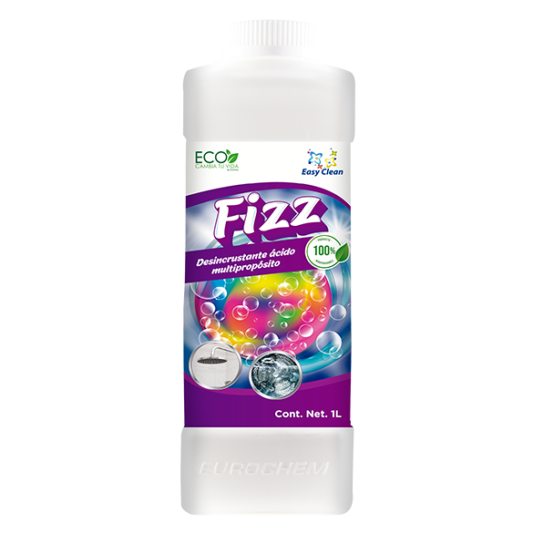 FIZZ es un desincrustante a base de ácidos orgánicos, utilizado para la completa eliminación de residuos y depósitos minerales en un sinfín de usos en el hogar. FIZZ es un un excelente limpiador de máquinas lavadoras de ropa y superficies con sarro en general.