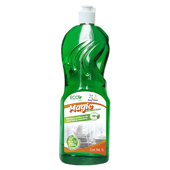 MAGIC es un producto diseñado para el lavado manual de platos, vasos, cubiertos y utensilios de cocina, con propiedades anti bacteriales.